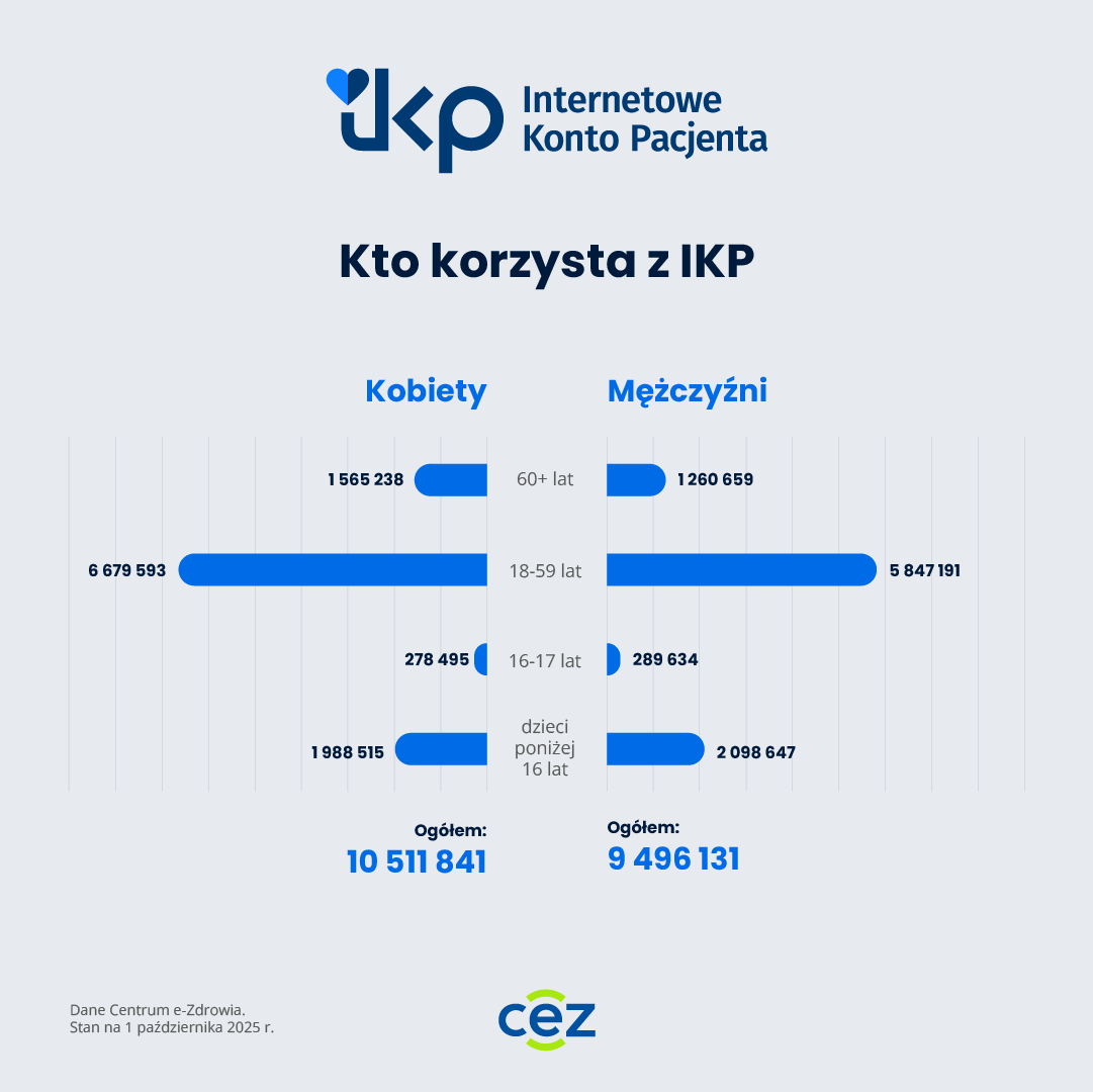 62% osób, które korzystają z IKP, ma 18–59 lat. Rodzice mają dostęp do 4 mln kont dzieci i ponad pół miliona kont nastolatków w wieku 16–17 lat. (Nastolatki mogą przeglądać swoje konto, ale nie podejmują decyzji zdrowotnych). Z IKP korzysta też ponad 2,8 mln osób powyżej 60 lat.