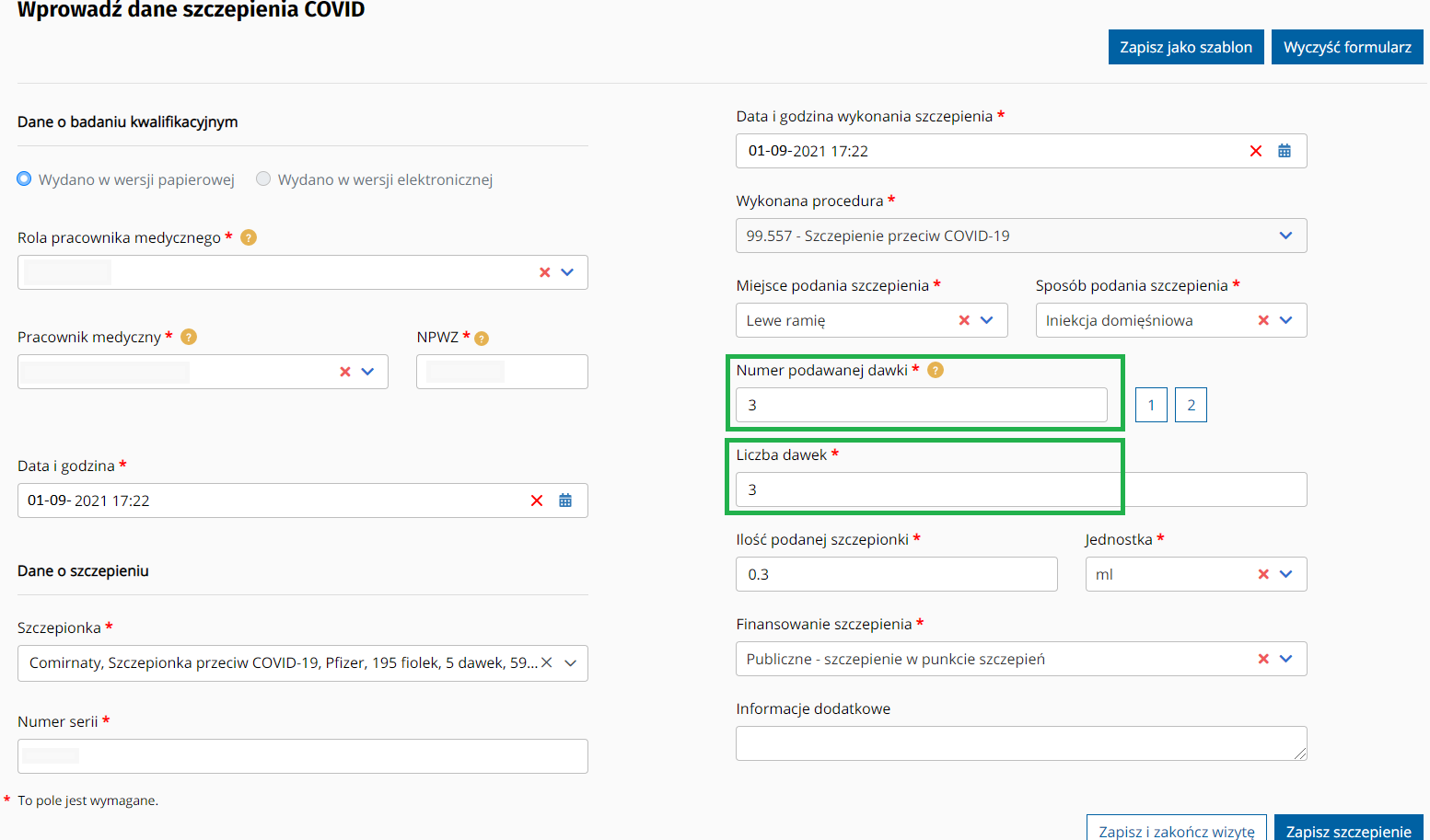Obsługa 3 dawki szczepienia